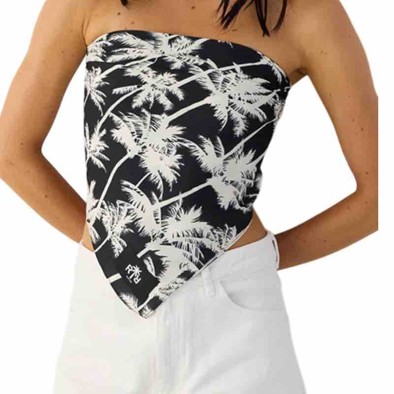 Raiine Garson scarf. Styling tørklæde i signatur palme printet georgette. Brug tørklædet som bandana eller bind det om som en top