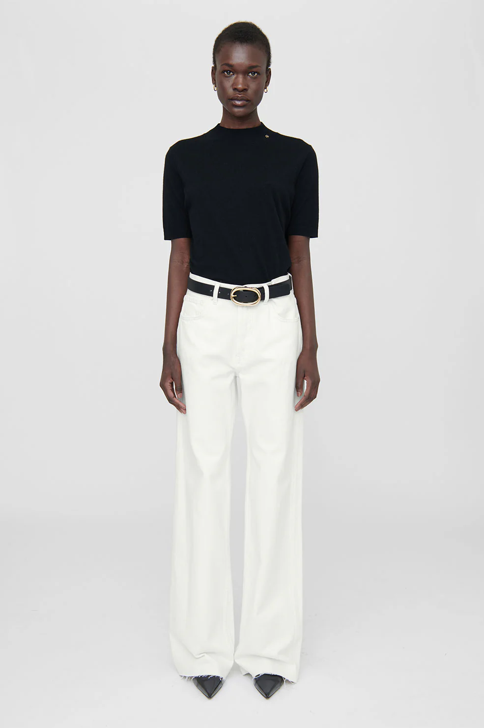 Anine Bing Hugh jeans Ivory. Hugh er en mid-rise jeans der skal hænge på hoften. Den er skåret i en nin stretch 100% bomuld i et five pocket design med vidde i de lange ben i en smuk råhvid farve.