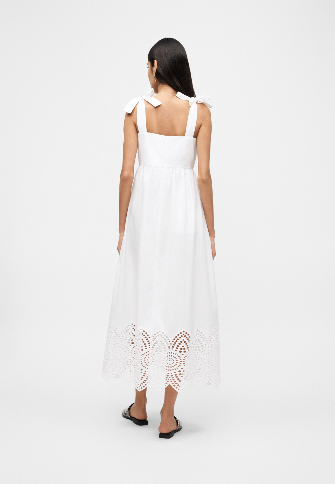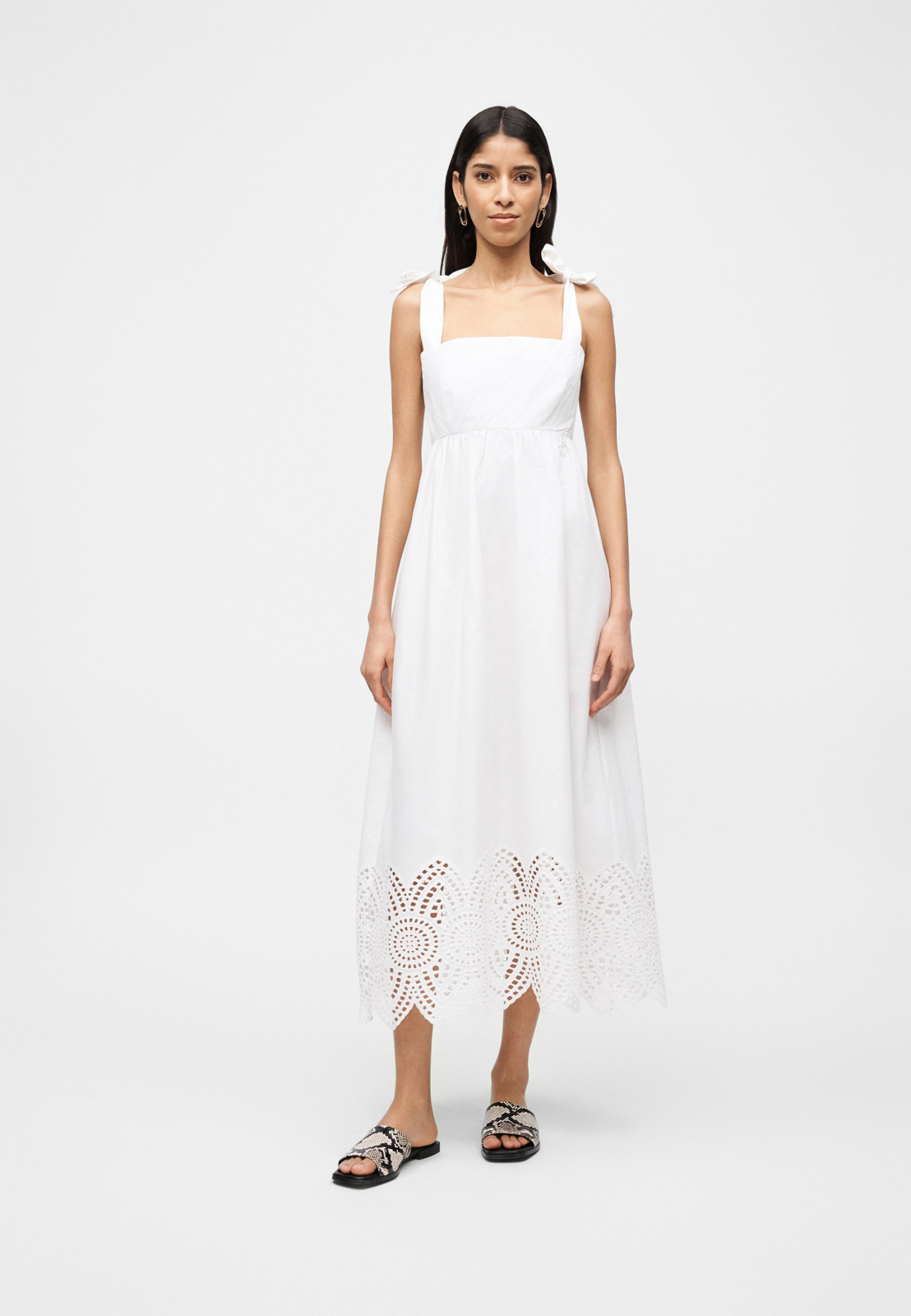 Kolo dress fra 2NDDAY, er en lækker poplin bomuld midi kjole med bindestrop, og en smuk broderi forneden. Perfekt til sommer, med cool støvler og sandaler.