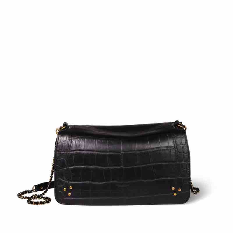 Jerome Dreyfuss Bobi skuldertaske med kæde. Den elegante klassiske Bobi taske i croco præget skind. Tasken har skulderrem og hardware i guld. Masser af plads da tasken kan lynes op siderne og ekspanderes. Indvendigt finder du et aftageligt spejl og skulderkæde. Der er tre rum indvendigt og tasken lukkes med klap og magnetlåse.