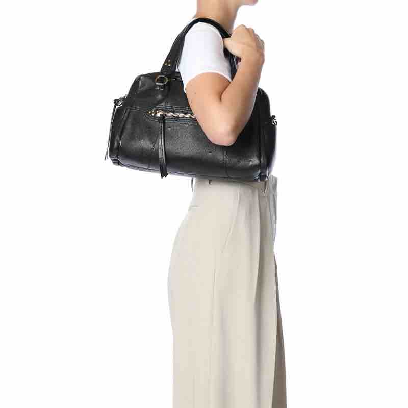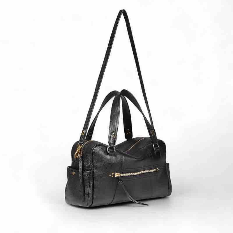 Udvendigt finder du én lynlåslomme og to påsyede lommer, mens indersiden byder på en ekstra lynlåslomme og en påsyet lomme til organisering af dine ejendele. Lynlåslukningen med lædertræk giver både sikkerhed og et sofistikeret touch, og det gennemtænkte design gør tasken ideel til både hverdag og rejser