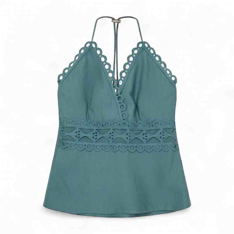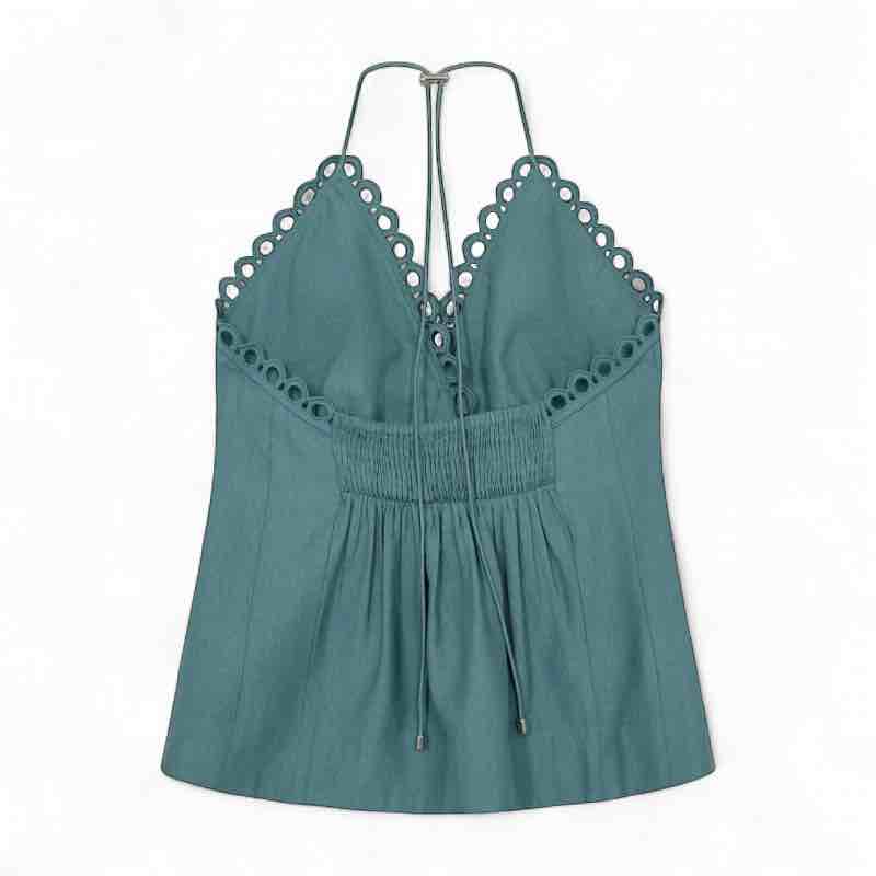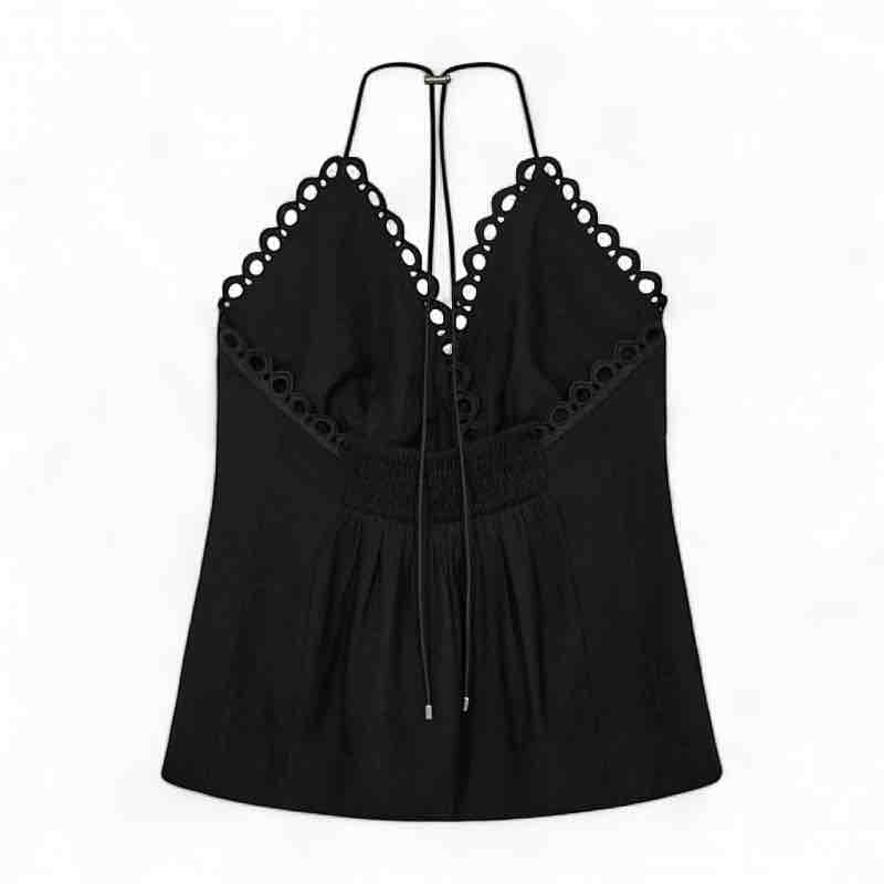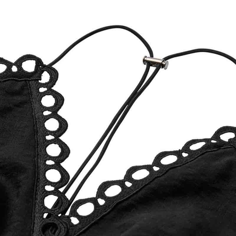 Copenhagen Muse CMASLEAH-TOP er en raffineret og eksklusiv top, designet i elegante cut-and-sew blonder, der giver et diskret glimt af huden på en sofistikeret måde. Den dybe V-udskæring fremhæver halsudskæringen smukt, mens den smockede ryg sikrer en behagelig og fleksibel pasform. De justerbare stropper bindes i nakken og tilfører et let og feminint udtryk. Brug toppen alene på varme dage eller sammen med den matchende nederdel for et stilfuldt og gennemført look, der emmer af moderne boheme og eksklusiv finesse 75% viscose 25% polyamid