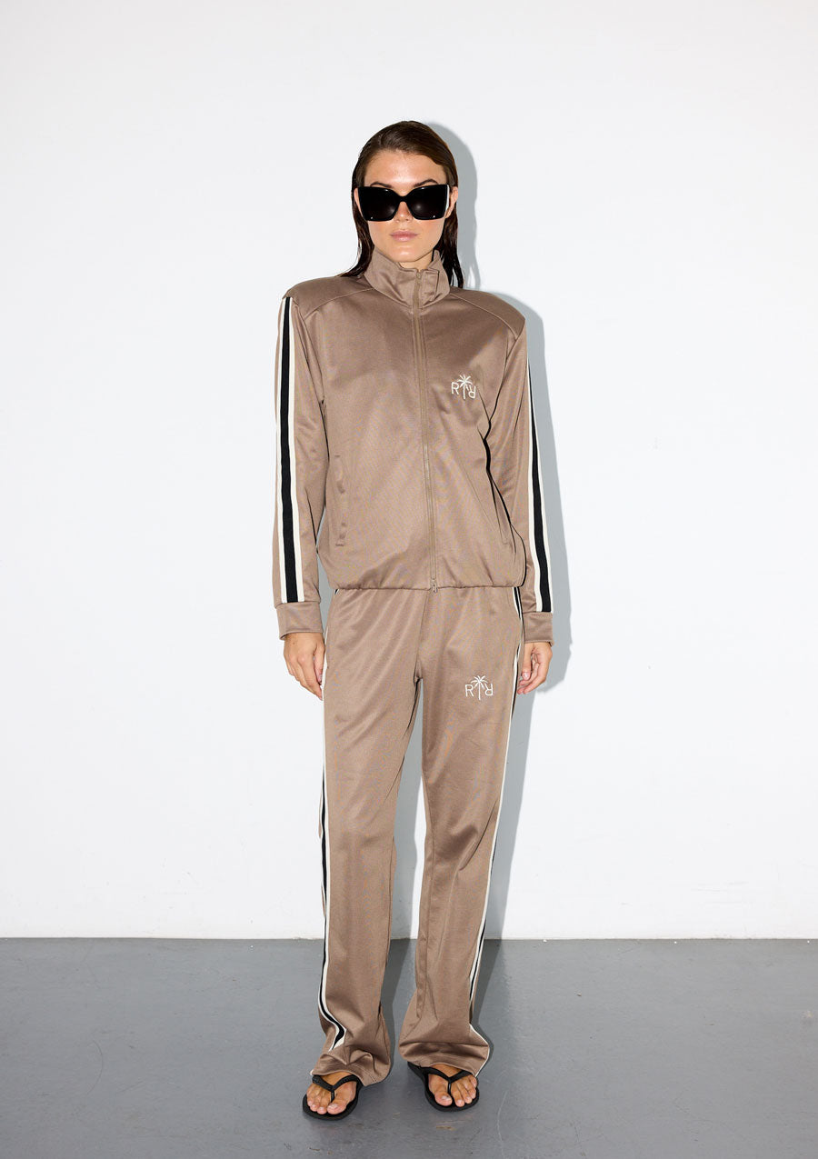 Ralph bukser fra Raiine, er en af deres personlige favorit item, bukserne har en afslappet og casual pasform, som giver komfort og et stilrent udtryk. Bukserne er regular i benene, har sidelommer med lynlås, og en cool stribe langs siderne, samt et palme RR logo på venstre lommer. De kan let dresses på eller ned alt fra andledning, med cool støvler og en blazer eller afslappet t-shirt eller sweatshirt for et mere hverdags-look. Et must-have for dig der ønsker både komfort og coolness i din garderobe.