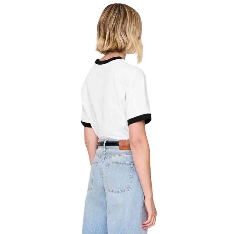 Anine Bing the Jaylin tee fra er en alsidig og stilfuld t-shirt, der bringer et moderne twist til den klassiske basic. Denne tee er lavet af blød, letvægtsbomuld, hvilket gør den utroligt behagelig at have på hele dagen. Dens afslappede pasform og dropped shoulders giver et cool og ubesværet look, perfekt til både hverdag og weekend