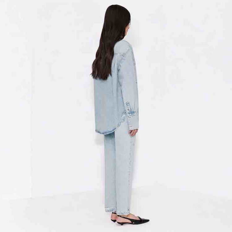 Anine Bing Dante denim shirt. Den perfekte kombination af afslappet elegance og rå attitude. Skabt i 100 % regenerativ bomuldsdenim uden stretch, har den en cool, slidt bleget blå vask med vintage-inspirerede detaljer som håndslebne effekter og subtile slidmærker.