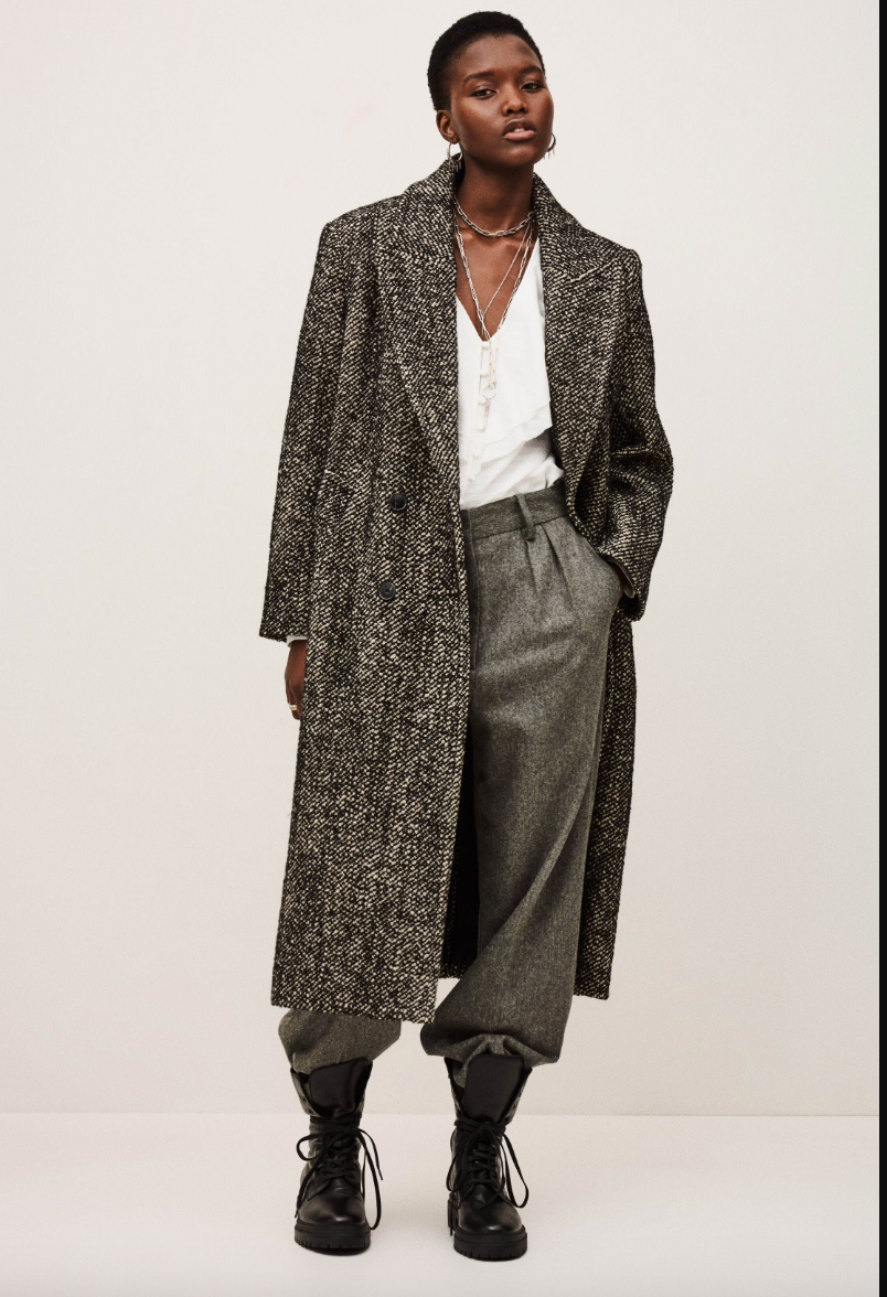 Lang oversize frakke fra ba&sh, i en lækker boucle kvalitet som giver den et ekslusivt udtryk, jakken er oversize og har et maskulint snit som gør jakken cool, frakken er dobbeltrad og har to lommer foran.
