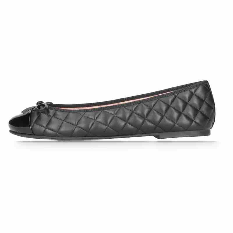 Pretty Ballerina Rosarion shade negro quilt. Klassisk og elegant ballerina i sort læder med quilt syninger med læder sløjfe samt lak snude