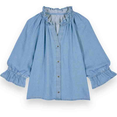Vanessa Bruno Bell Blouse er en smuk og luftig bluse, der forener romantiske detaljer med bohemefornemmelse i en tidløs silhuet. Med sin løstsiddende pasform og lette stof falder den elegant om kroppen og giver et feminint, ubesværet udtryk. Blusen har 3/4-lange puffede ærmer med bløde rynker ved manchetterne, dyb V-udskæring og fine rynkedetaljer ved skuldrene – alt sammen elementer, der tilfører et sofistikeret og afslappet look til både hverdag og fest